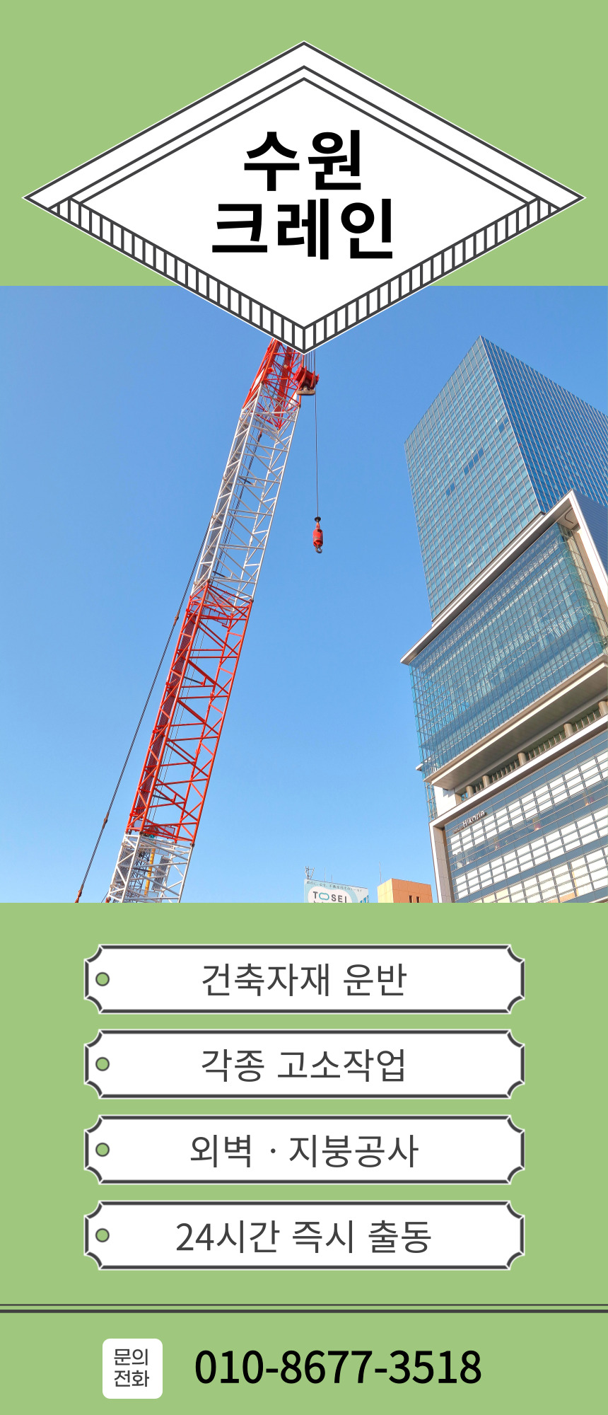 | 제목 | 수원크레인 우만동 자재 인양 순간 포착 |